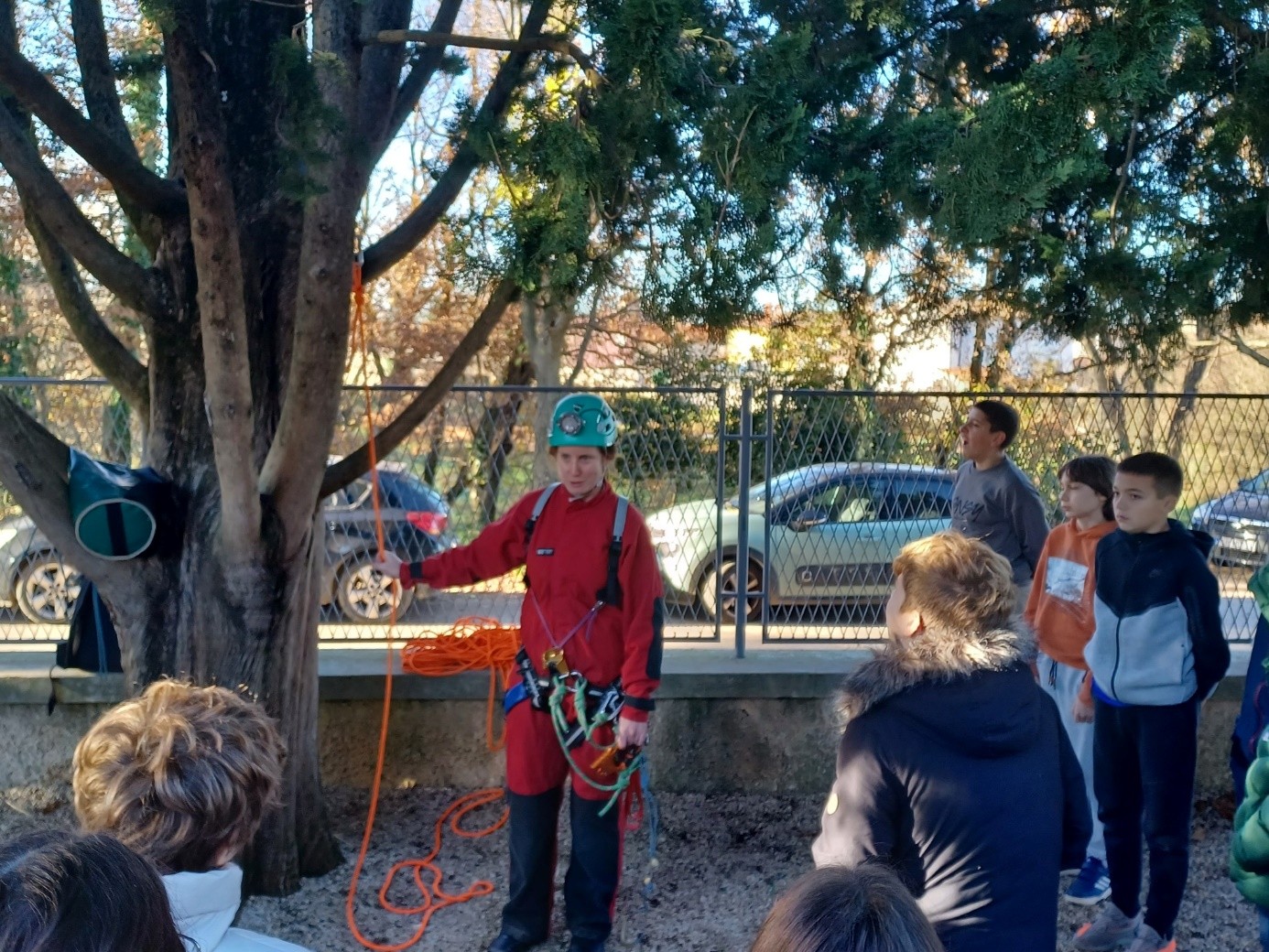Posebno zanimljiv dio predavanja bio je kada je gošća, odjevena u potpunu speleološku opremu, odijelo, kacigu i opremu za kretanje po užetu, demonstrirala tehnike spuštanja i penjanja po užetu. Učenici su imali priliku vidjeti kako izgleda speleološka oprema i koliko je znanja, vještine i opreza potrebno za istraživanje podzemnih prostora koji predstavljaju važan rezervoar pitke vode.